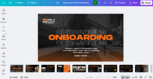 This project establishes the interactive client onboarding presentation for Only Impact (a local marketing agency), designed to facilitate in-person and virtual kick-off meetings. While the agency’s previous identity as “Spike Media Miami” relied on a clean, traditionally corporate aesthetics, this rebrand introduces a bold “street-style,” urban visual identity to better align with a target demographic of local creators, businesses, and community-oriented organizations. Developing this presentation required transitioning the agency from static, text-heavy documents to a visual narrative that guides clients through a transparent four-phase workflow: Discover, Design, Develop, and Deliver. This presentation is designed to be presented by agency leadership, helping to demystify complex marketing strategies for non-technical clients by including aspects such as the “yearbook-style” team profiles and localized case studies. For an agency that prioritizes community connection, this presentation ensures that the critical onboarding phase remains as personable and authentic as the brand itself.